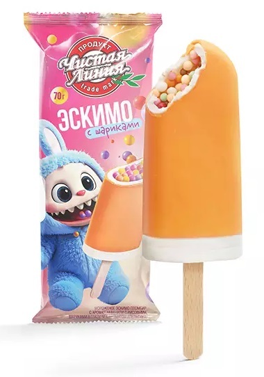 Эскимо Спиролло пломбир ванильный с рисовыми шариками в апельсиновой глазури 70г, Чистая Линия